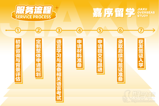 公司名“秦沣嘉序”紧密联系关中地区的历史文化脉络,体现了公司扎根西安、 传播语言文化、追求卓越的愿景。品牌名称嘉序留学,寓意美好开始,致力于广大西安学子通过机构的平台和服务走向世界开启美好的海外求学之路。