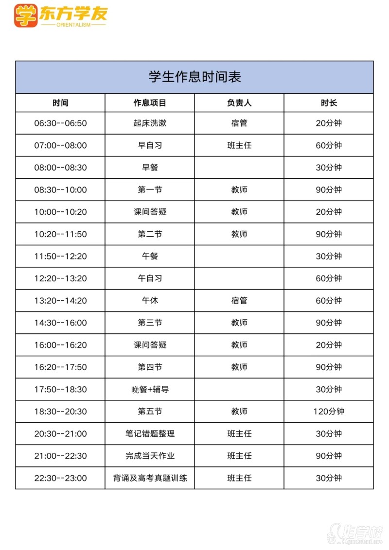 东方学友教育搭建出以科任老师、一对一辅导老师、学习规划师和班主任学管老师四位一体的独特教学模式为学生高考保驾护航。