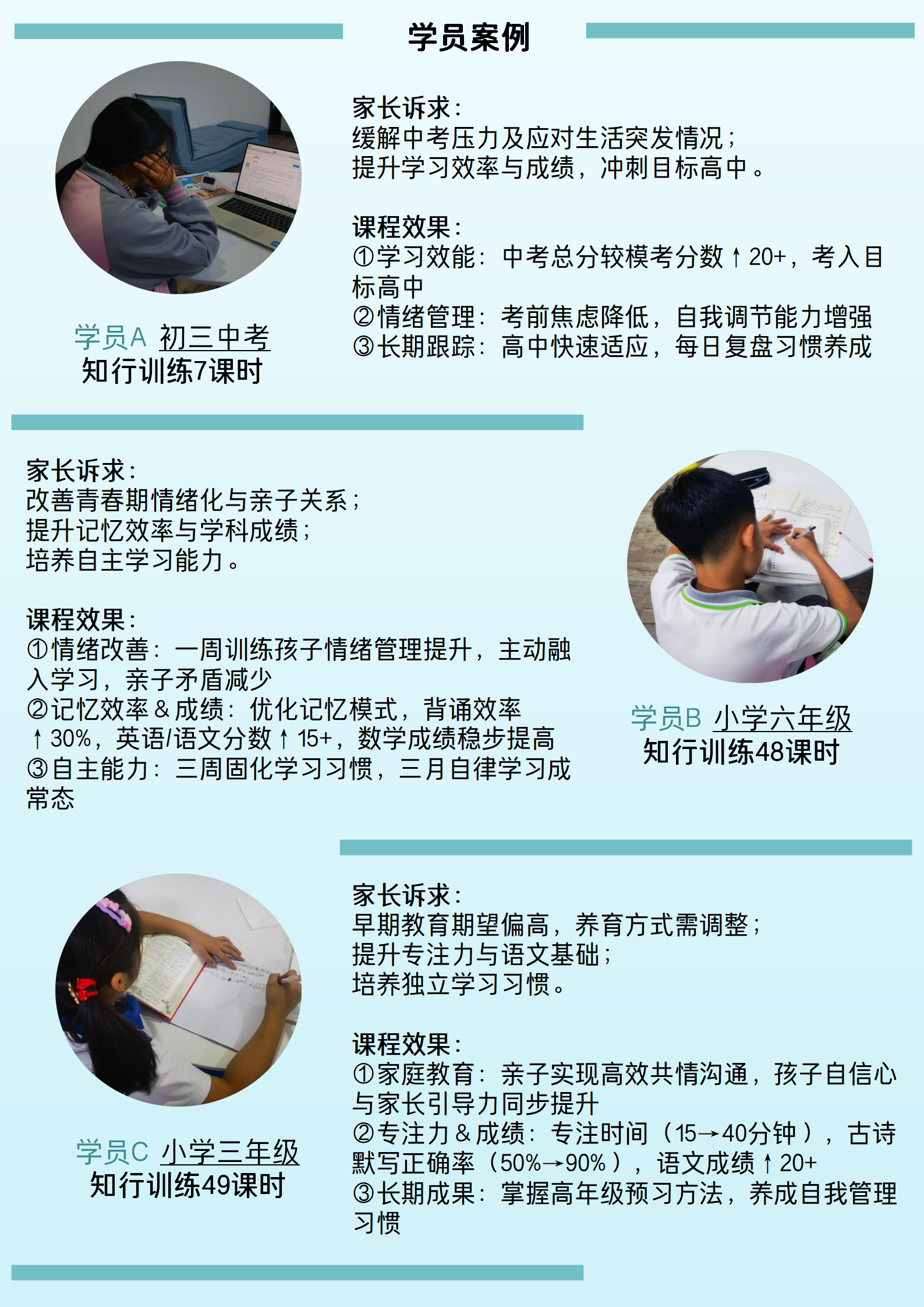 积累上百例个性化辅导的成功经验,我们既授之以“渔”——构建科学的学习方法论;也授之以“鱼”——提供高效的实战应试技巧。我们坚信,唯有两者兼备,才能确保教学成果的切实落地,真正为孩子的未来赋能。