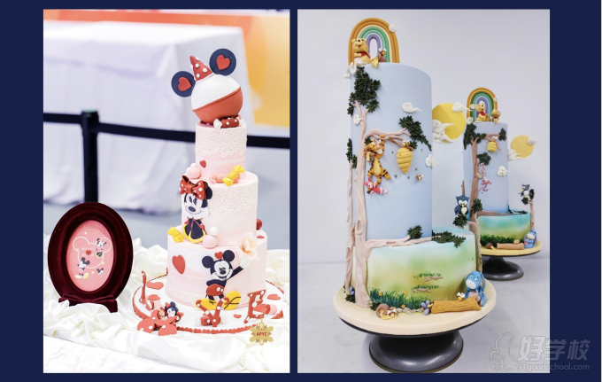 熟悉翻糖蛋糕入门技法、色彩搭配、装饰元素的运用,从而更好地顺利完成整个卡通主题翻糖艺术蛋糕。