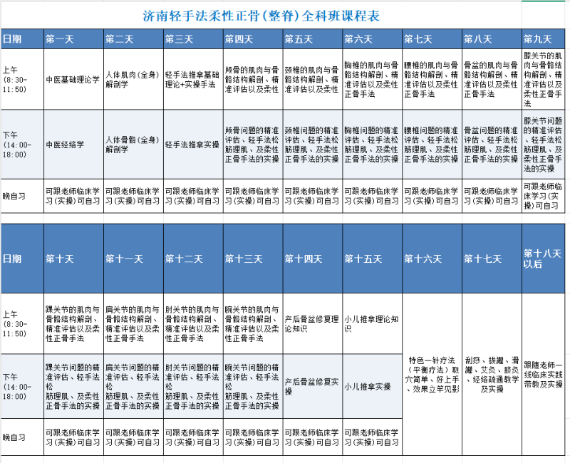 1.一次学习所有正骨推拿手法,中间无升单环节,无“精华班”“弟子班”等各种收费明目!