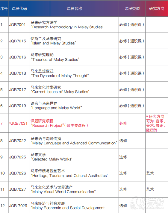 [学制]1年,马来亚大学校本部全日制3学期学习[国内课程]出国前线上雅思强化培训[国外课程]学分课程、论文及答辩