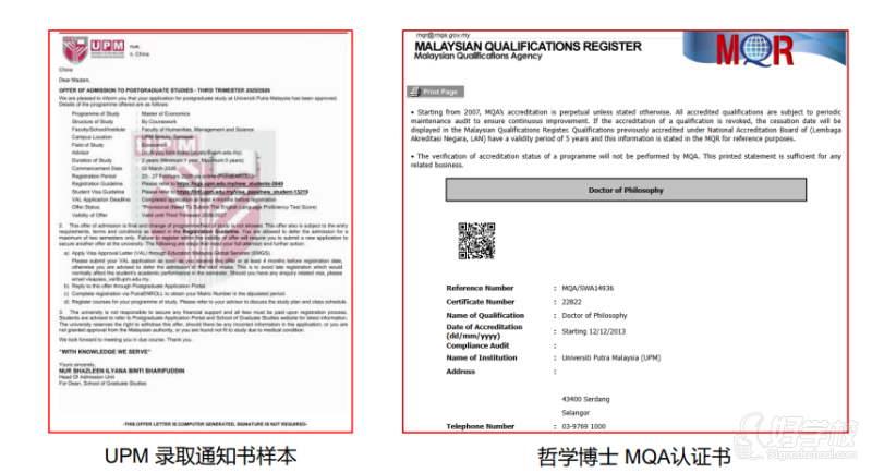UPM 始建于1931年,是世界名校,东南亚综合性研究型的公立大学,所有课程均获得马来西亚学历认证机构(MQA)和马来西亚高等教育部最高级五星认证,是中国教育部承认的正规国外院校。