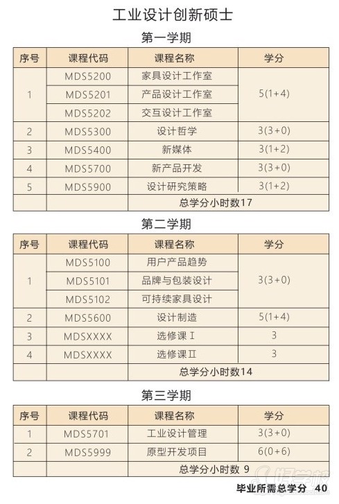 工业设计创新硕士课程(MIDI)为为期三学期或一年的项目。项目招生工作每年从9月开始。报名参加此课程的学生须完成40学分的课程学习方可毕业。