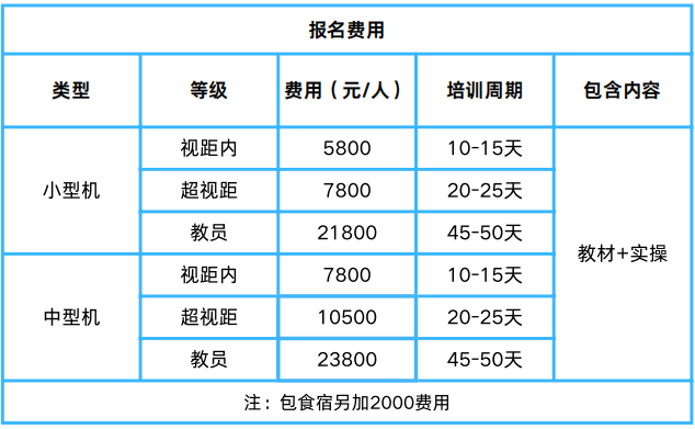 无人机培训的专业内容包括:基础、飞行、操作、高级应用、实操模似,安全与应急处理及考核认证,学员培训结束后可以考取中国民用航空局颁发的“民用无人驾驶航空器操控员执照”。