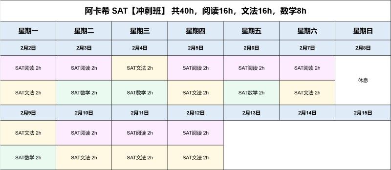 通过 40 小时短期冲刺训练,针对 SAT 考试重点难点进行集中突破,帮助学生在考前快速调整状态,熟悉考试节奏,提升应试信心,适合临近考试的学生。