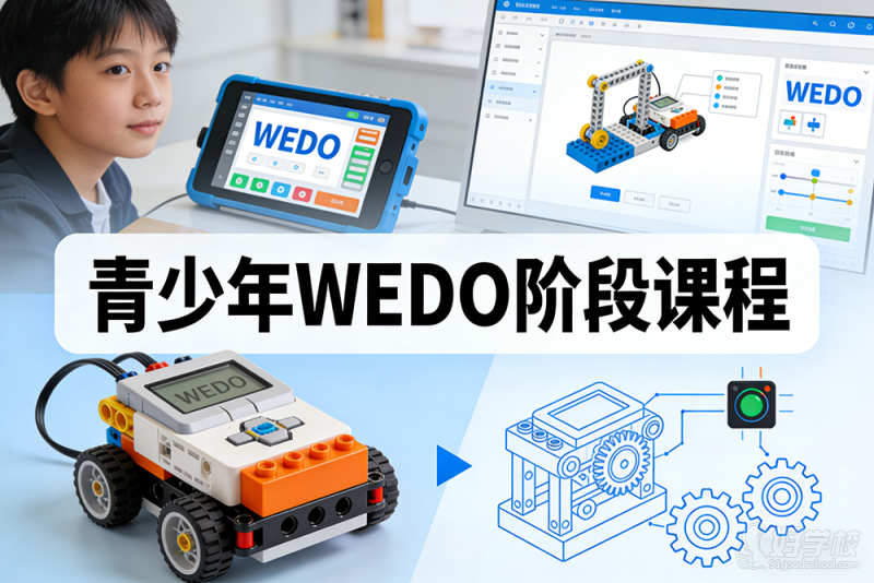 WeDo阶段课程围绕“实物构建+行动编程”展开,内容分为两大核心模块: