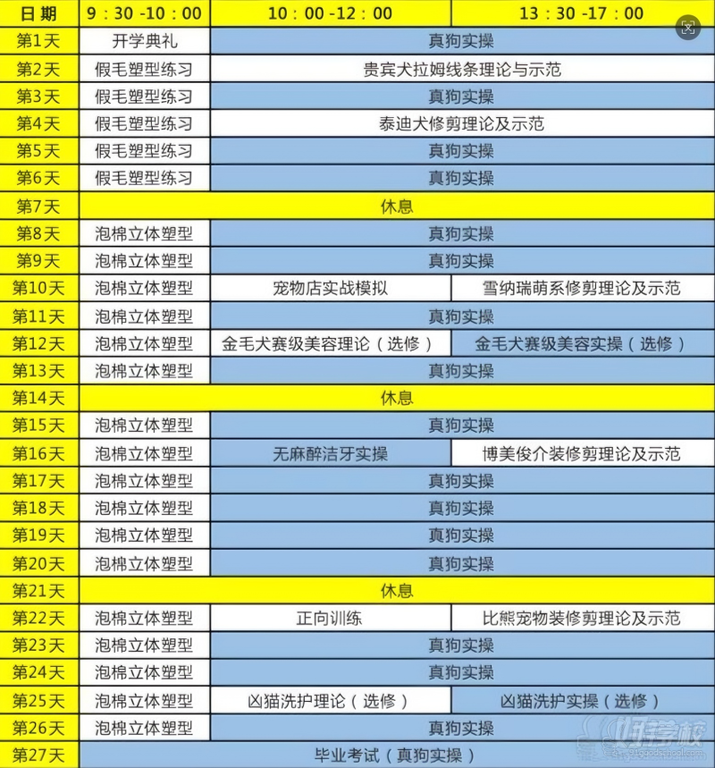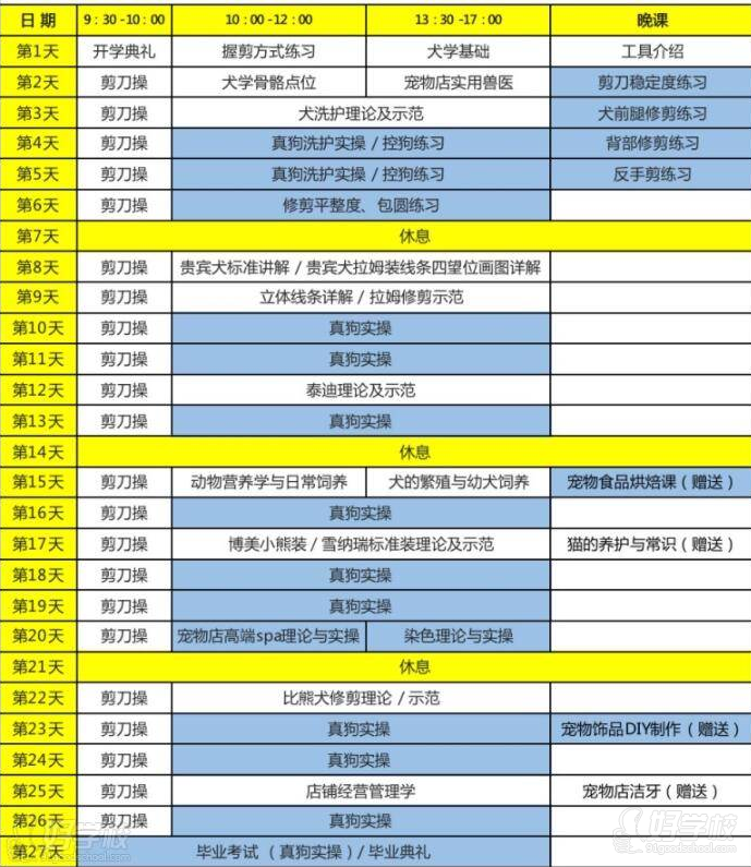 4、为了使学生快速上手,并能够适应宠物店的日常工作,几乎每个周末都可以在上海知名的宠物沙龙实习并由驻店高级美容师一对一指导。