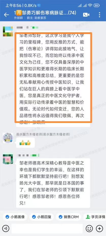 巧解伤寒速成实战班自开班以来至今,得到了广大学员的一致好评。他们纷纷表示,通过实战班的学习,获益良多。以下是部分学员的真实反馈: