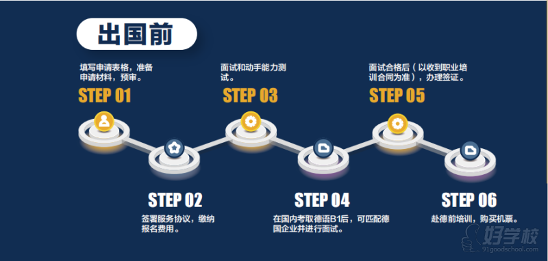 在国内通过德国企业面试,与企业签订职业培训合同,办理赴德手续。