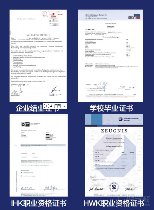 在德国进行为期3年的职业培训,学生30%时间在校学习理论、70%时间在企业带薪培训,薪资约1000欧元/月。