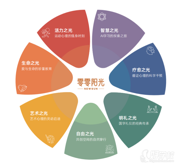 在森田疗法和循证心理咨询的理念指导下,上世纪80年代的德国,已经开始在院内对来访者开展多元整合的干预策略,包括仪器康复、共娱活动、艺术疗愈、团体互助等,这些整合的方案,疗愈效果远远大于单一手段。为此,我们根绝休学青少年的特殊性,提出了“七色光成长方案”,从7个维度对学员进行立体化训练。
