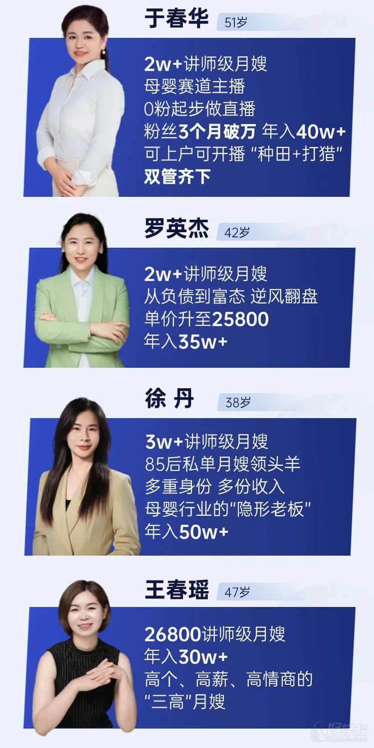 月嫂 + 讲师双身份:做月嫂拿高单,闲余时给学员陪跑授课