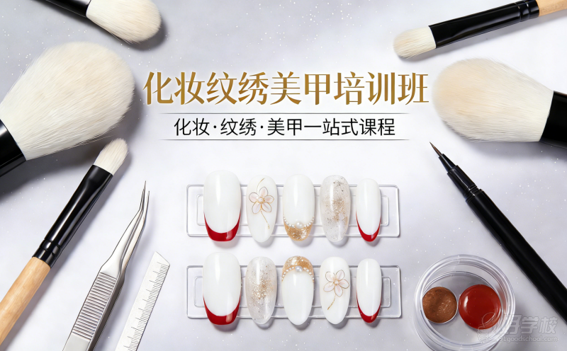 通过学习能够完全适应市场需求,专业新娘跟妆,以彩妆新娘当日跟妆、美甲、半永久为主旨。