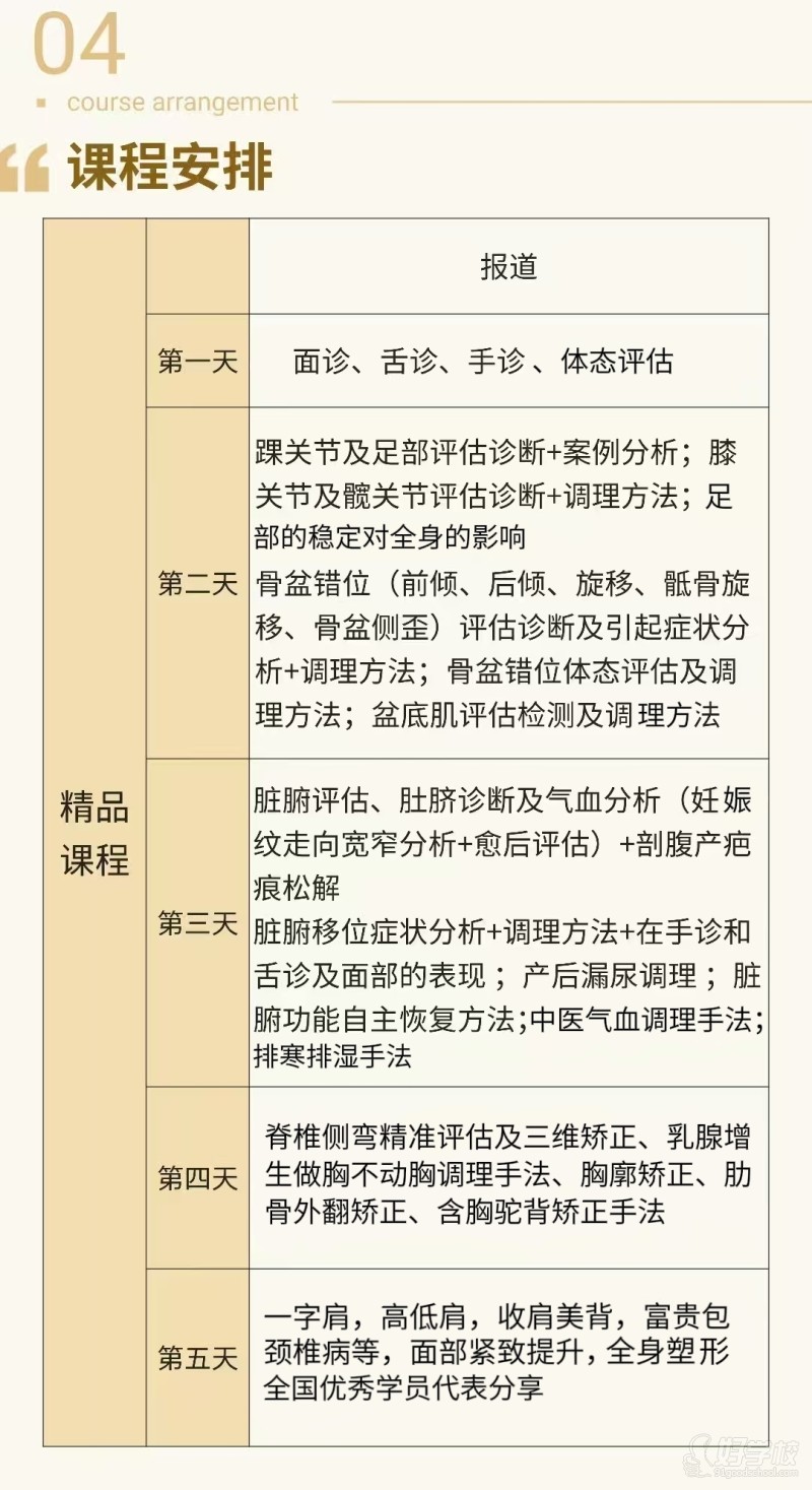 培训课程紧扣市场刚需,每年开设多场康复类专题培训,覆盖产后康复与体态调理全领域:从徒手骨盆矫正、极速瘦腹、盆底重构、脏腑归位等产后核心项目,到疼痛管理、含胸驼背矫正、脊柱侧弯康复、全身整脊塑形、脏腑疾病调理等热门课题,几十种课程项目层层迭进,手把手理论➕临床带教传授硬核手艺,让每一位学员手握一技之长,筑牢职业铁饭碗。