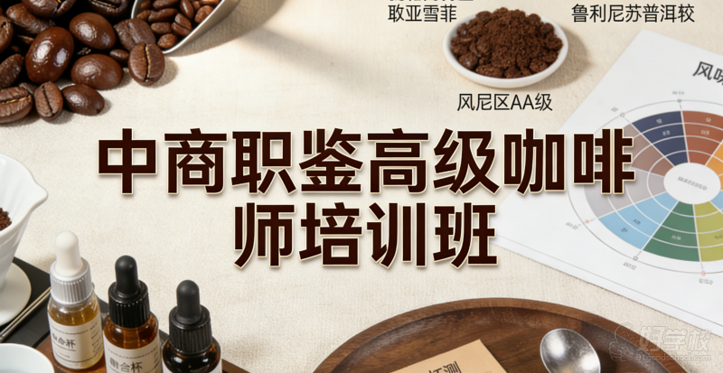 中国商业联合会培训部与中国商业联合会商业职业技能鉴定指导中心合发的官方证书,专业的咖啡师课程,全面的系统理论+充足的实操时间。