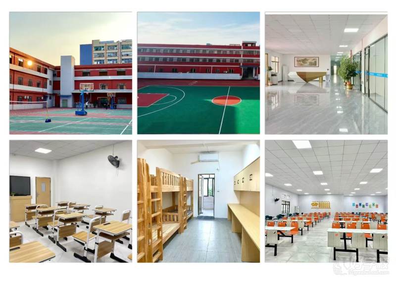 具有独立·封闭式办学空间·设备设施先进完善,集教学楼·学生公寓·学生餐厅·运动场地于一体,实行人性化封闭式管理。