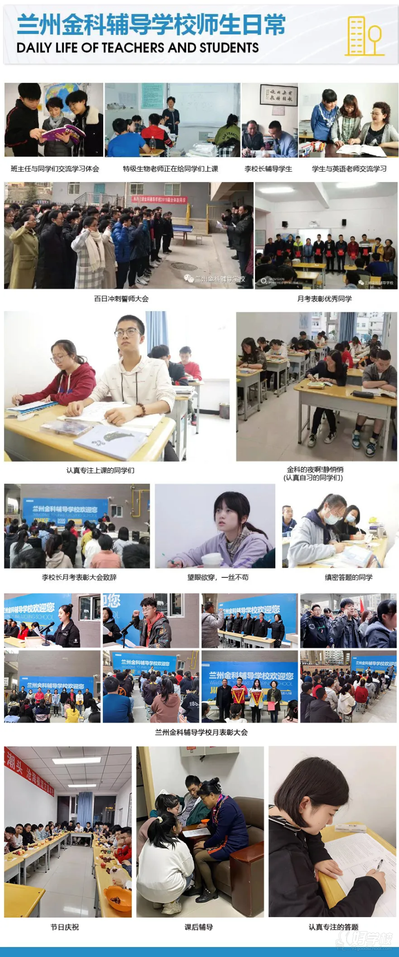 目前学校拥有教职工18人,全面完善的教学体系精心点拨 优质教学特级教师,金城名师,高级教师,小班精品教学