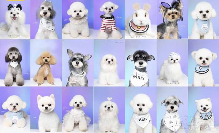 包含泰迪 / 比熊 / 雪纳瑞 / 博美等十余种常见热门犬种造型的系统学习。覆盖犬种认知 AKC 赛制标准、护理养护装束分类,以及电剪、手剪实操技能。区分赛级造型与市场化宠物装造型,满足不同场景需求。