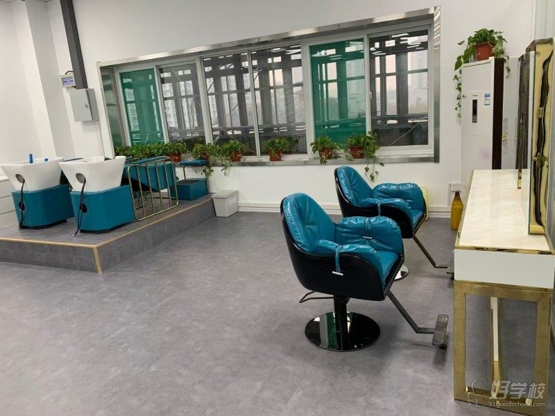 学校教学占地五百平米,规划科学合理,设有配备多媒体设备的理论教室、模拟真实发廊场景的实操教室、供学员反复打磨技术的练习教室,以及针对性补强短板的补课教室。