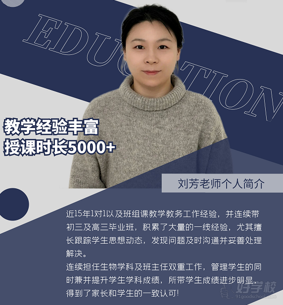 近15年1对l以及班组课教学教务工作经验,并连续带初三及高三毕业班,积累了大量的一线经验,尤其擅长跟踪学生思想动态,发现问题及时沟通并妥善处理解决。