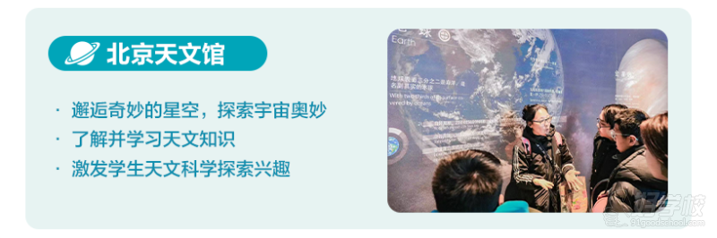 上午:场景教学 - 北京天文馆探索星空 / 宇宙,了解天文知识。
