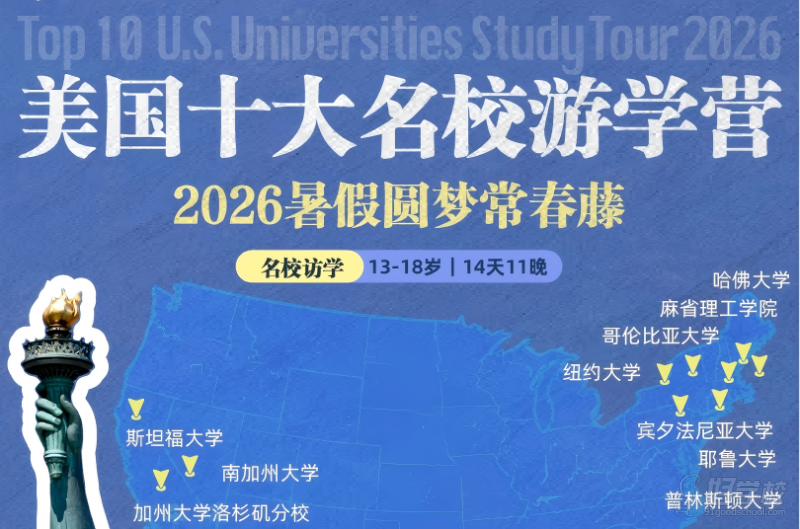 美国拥有众多世界名校,吸引全球学子。这些高校不仅拥有雄厚的师资力量和先进的教学设施,还提供了丰富的课程选择和学术研究机会。本次,我们将带领孩子们走访10所世界名校,进行深入的校园参观,了解其历史文化,获取留学咨询等,也在3所名校课堂上,体验经典课程,感受名校课堂氛围。