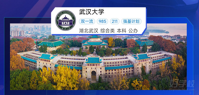教育部直属"双一流"A类高校,源自1893年清末湖广总督张之洞创办的自强学堂,是中国近代最早的国立大学之一,11个双一流学科,7个专业排名全国第1,小米集团创始人雷军,国家科技学技术奖获得者李德仁皆是武大毕业。