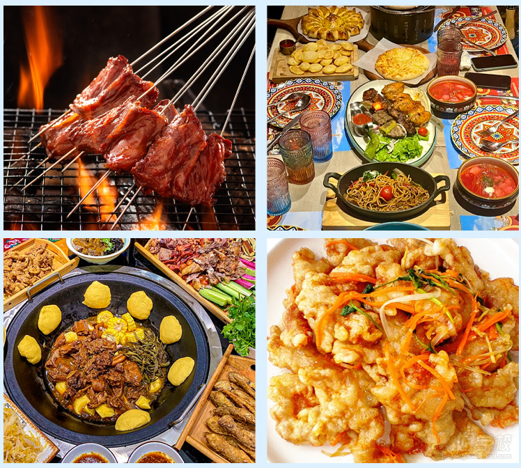 包间锅包肉、铁锅炖、松花江鱼宴、烧烤、俄餐等
