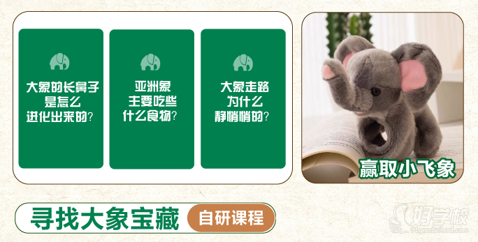 《寻找大象宝藏》:大象走路没声音?没有空调咋降温?鼻子为啥那么长?老去河里挖土吃?带着问题去探访,赢口爱小飞象。