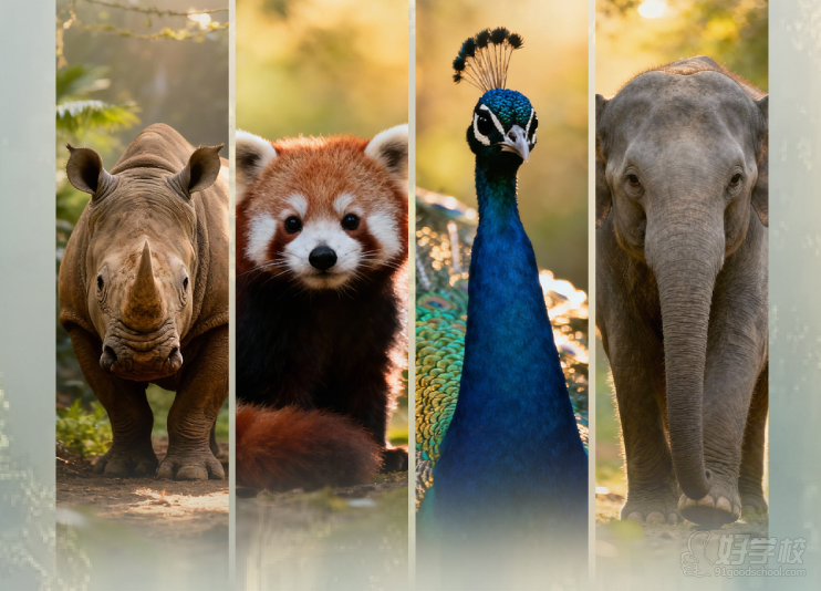 亚洲象、小熊猫、白犀牛、枯叶蝶、跳舞草