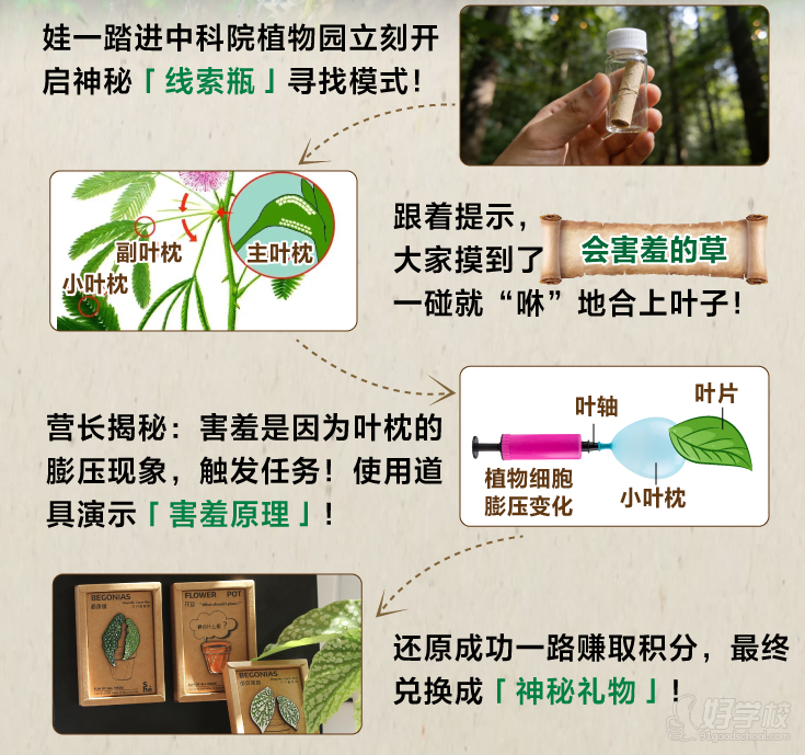 《植物猎人寻宝》:揭秘龙脑香科的种子为何长出“翅膀”旋转下落,用科学小实验还原含羞草“害羞”的原理,亲子雨林默剧表演『绞杀现象』一一赚积分,赢文创奖励。