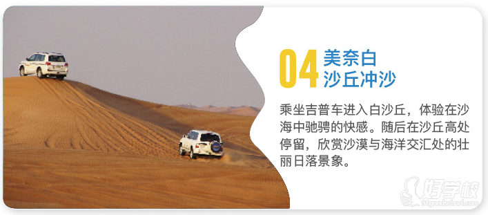 (2)美奈:让炙热的沙漠与温柔的海洋在此相拥,造就了“左手沙丘、右手海浪”的视觉奇迹。