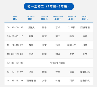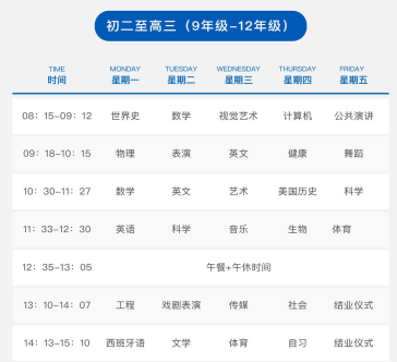 初二至高三课程参考安排