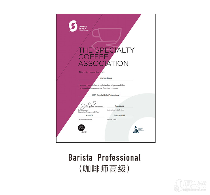 关于证书:完成全部课程学习后可获得SpecialtyCoffeeAssociation(SCA精品咖啡协会)颁发的CoffeeSkillsProgram国际证书