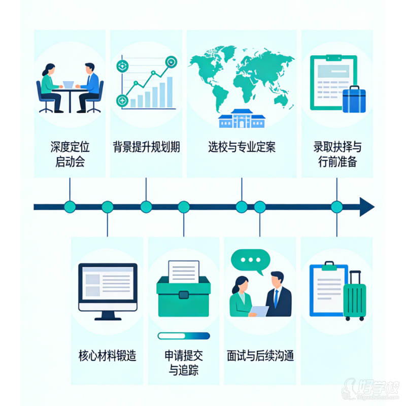- 材料准备:文书撰写、推荐信获取、标化考试辅导等。