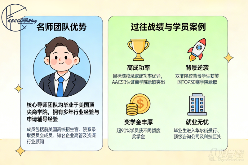 - 我们的核心导师团队均毕业于美国顶端商学院,拥有多年的行业经验与申请辅导经验。