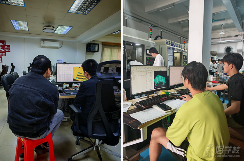 模式二:前15~30天同样先在编程教室学习绘图;第2个月,上课内容改为:白天学习编程,晚上上机实战学调机以及综合练习,直止学会为止;