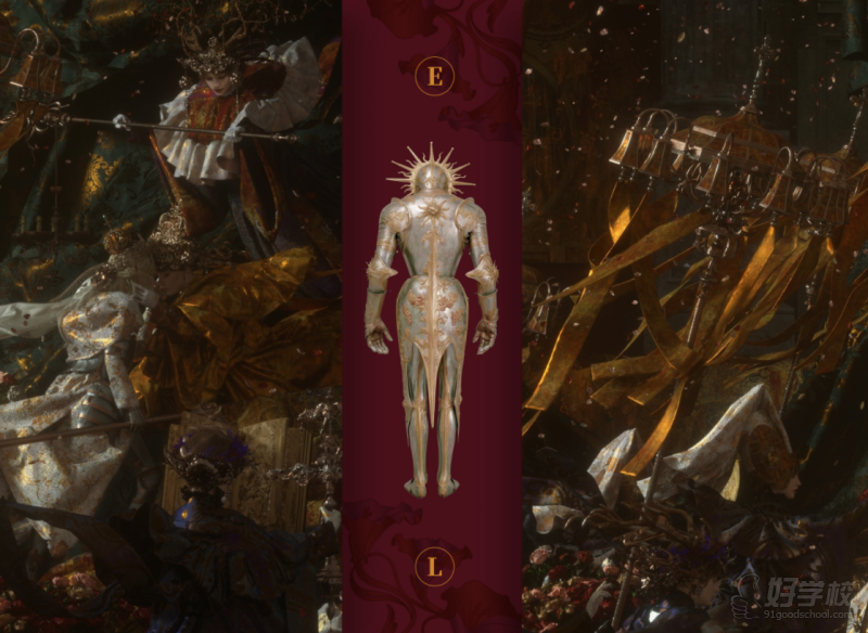 课程内容涵盖建筑、人物、服装、盔甲、首饰等多个创作方向,通过系统性的设计分析,引导学员理解不同题材下的视觉语言与故事性叙事逻辑,使作品不止于美观,而是有理由地存在。