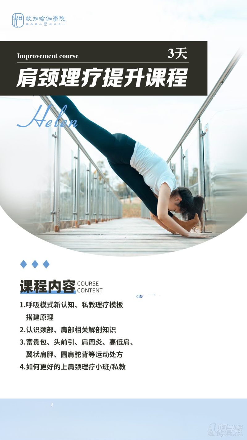 别让肩颈问题拖垮生活质量!敬知瑜伽学院 3天肩颈理疗提升课重磅上线,由Helen老师亲授,从解剖原理到私教实操,精准攻克肩颈顽疾,帮你找回肩颈自由、重塑气质体态!