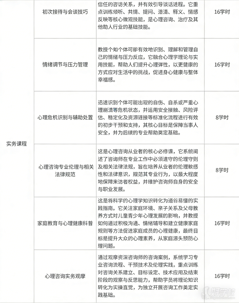 本课程旨在培养具备系统心理学理论基础与实操能力的专业辅助型心理咨询人才,帮助学员掌握心理咨询基础理论与方法,能够在高级心理咨询师指导下,从事心理咨询辅助工作与心理健康教育工作,守护个人与他人的心灵健康,同时为学员后续职业发展与自我成长奠定坚实基础。