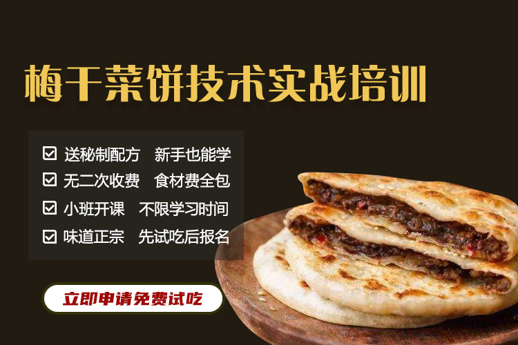梅干菜饼项目学习采用“10%理论+ 90%实践+开店指导”学习模式,包含绝密配方和制作工艺。