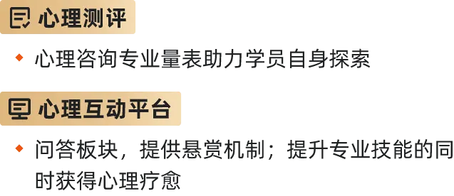 提供心理测评、心理互助平台、学习宝典、智能题库等多元化平台资源全面共享
