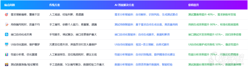 从需求分析到线上监控,打通AI测试全链路,真正实现测试解决方案的效率迭代与提升。
