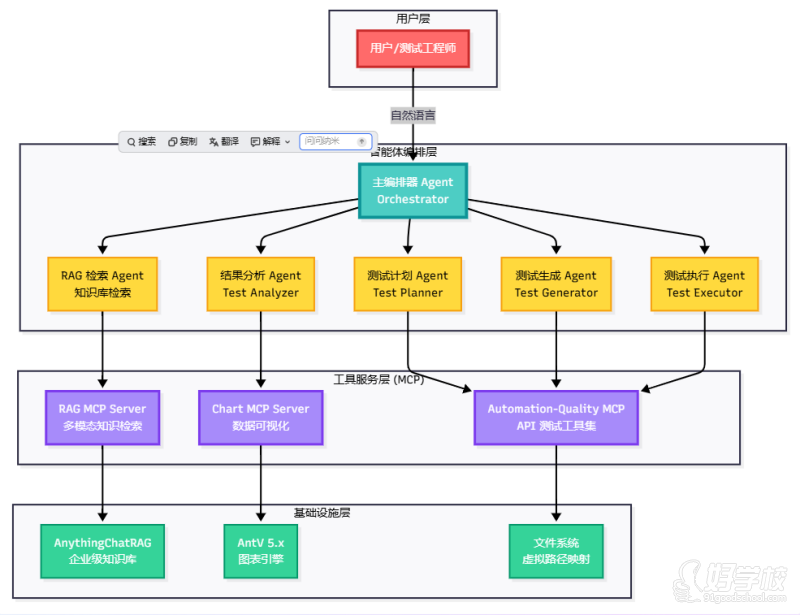 构建协作系统:能够搭建多智能体协同工作的测试平台,实现端到端智能测试