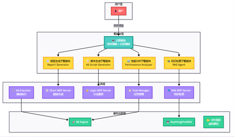基于 AI 驱动的下一代性能测试解决方案。将传统性能测试的复杂流程简化为自然语言交互,让性能测试变得像聊天一样简单。通过自然语言描述即可完成测试,AI 自动生成 K6 测试脚本,智能分析并生成可视化报告。