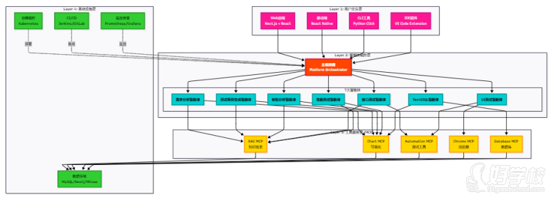 基于企业级测试云平台设计理念,整合课程中所有智能体项目(需求分析、测试用例生成、缺陷分析、接口自动化、性能测试、UI自动化、Text2SQL),构建一个统一的企业级AI测试管理平台。通过7大智能体协作架构,实现测试全生命周期的智能化和自动化,提供10-500倍效率提升、30-80%质量提升、40-60%成本降低的企业级测试解决方案。