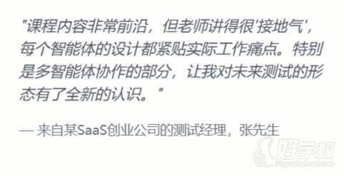每个智能体都为解决企业一线测试难题而设计,学习成果可量化,真正学以致用。