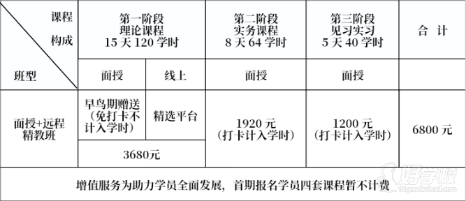实行分级分班管理,课程培训每班最多100名学员,见习实习每班最多50名学员,每班安排班主任1名。 提供学员服务、咨询答疑、引领课外学习辅导等事宜。