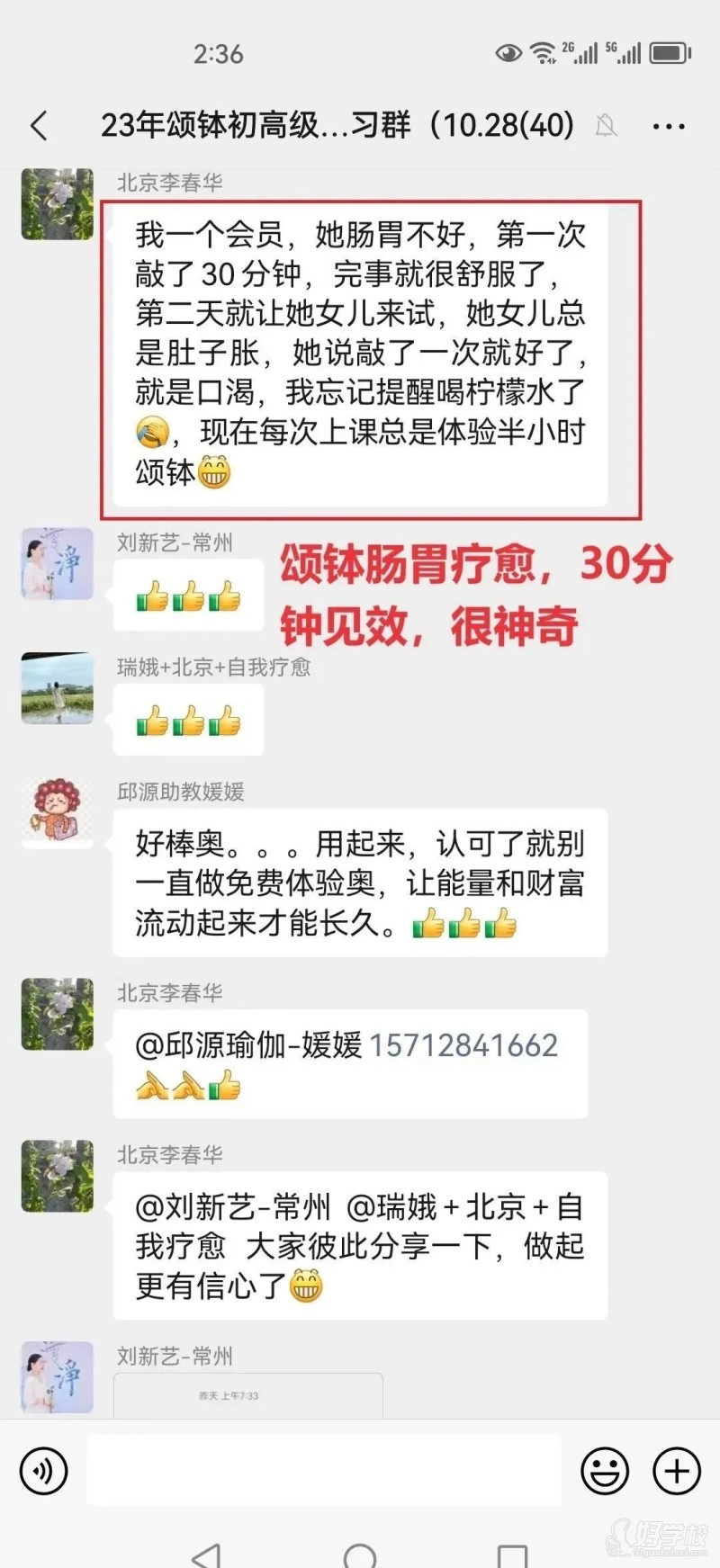 多效叠加:部分学员课后出现 “小腿放松、脚心发热”,甚至妇科炎症改善等多层面健康变化;颂钵结合邱源理疗手法,效果可提升 3-5 倍,且操作更省力(可替代手与工具)。